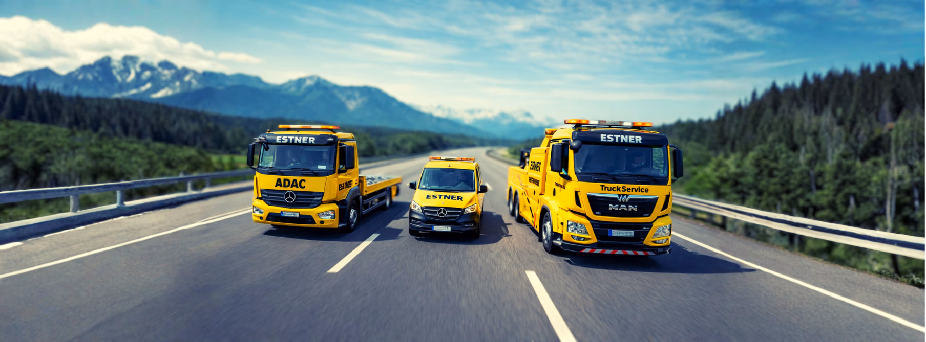 Der Fuhrpark von ESTNER ist auf unterschiedlichste Anforderungen ausgelegt und bildet die Grundlage für ein breites Einsatzspektrum. Im klassischen Bereich decken unsere Fahrzeuge unter anderem Abschleppdienst, Pannendienst, Truckservice und Transport zuverlässig ab und sorgen dafür, dass Hilfe schnell und passend zum jeweiligen Einsatz ankommt.
