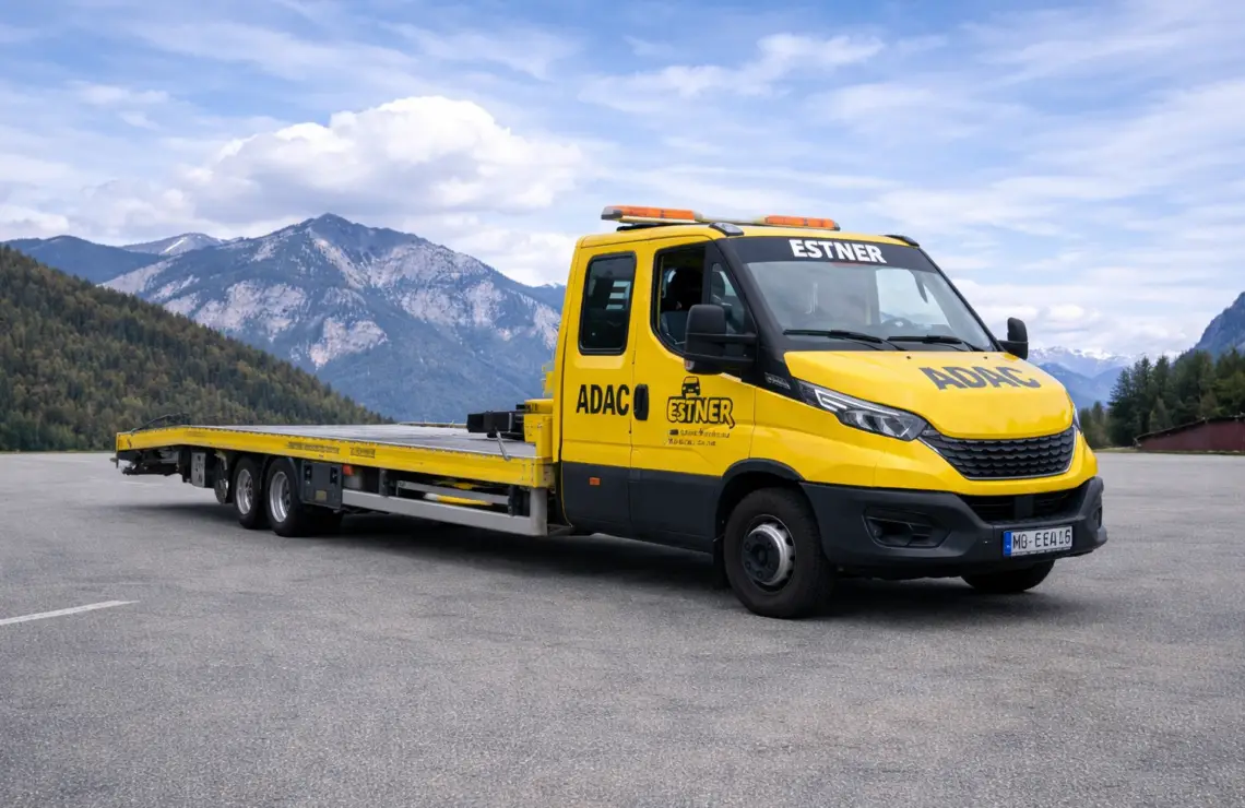 Kompaktes Abschleppfahrzeug für PKW und leichte Nutzfahrzeuge. Mit robustem Schiebeplateau eignet sich der Iveco Daily ideal für schnelle Pannenhilfe und sichere Fahrzeugtransporte im regionalen Einsatz.