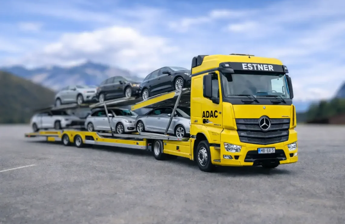 Professioneller Autotransporter für Mehrfach-Fahrzeugtransporte im nationalen und internationalen Einsatz. In Kombination mit der Mercedes Actros Zugmaschine ermöglicht dieses Gespann einen sicheren, effizienten und wirtschaftlichen KFZ-Transport.