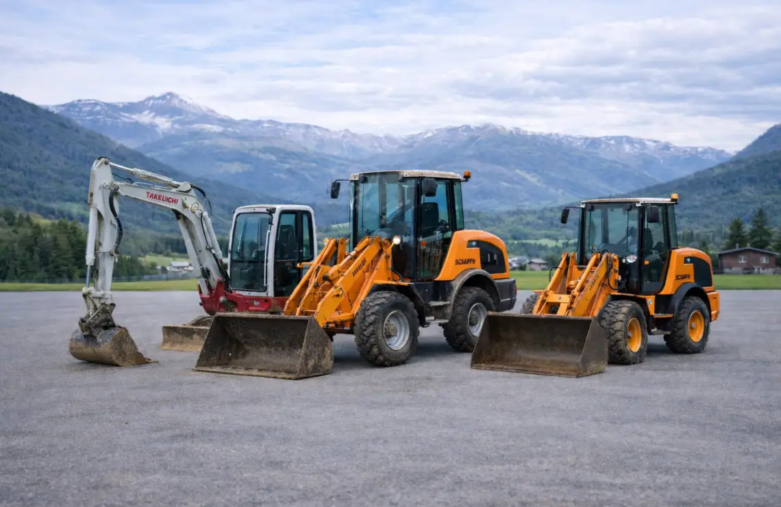 Unsere kompakten Baumaschinen – bestehend aus Takeuchi Bagger 3,5t sowie Schaeff Radladern mit 3t und 3,5t sind ideal für präzise Erd-, Verlade- und Tiefbauarbeiten auf kleineren Baustellen. Dank ihrer kompakten Bauweise eignen sie sich besonders für flexible Einsätze im Straßenbau und Umweltservice.