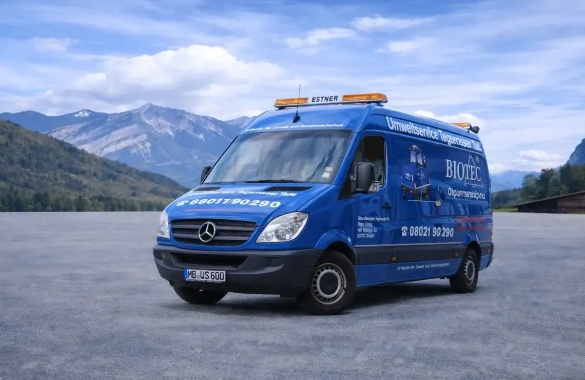 Vielseitiges Servicefahrzeug für Umwelt- und Ölspureinsätze. Der Mercedes Sprinter dient als flexible Transporteinheit für Reinigungsgeräte und Zusatztechnik und unterstützt schnelle Einsätze im gesamten Einsatzgebiet.