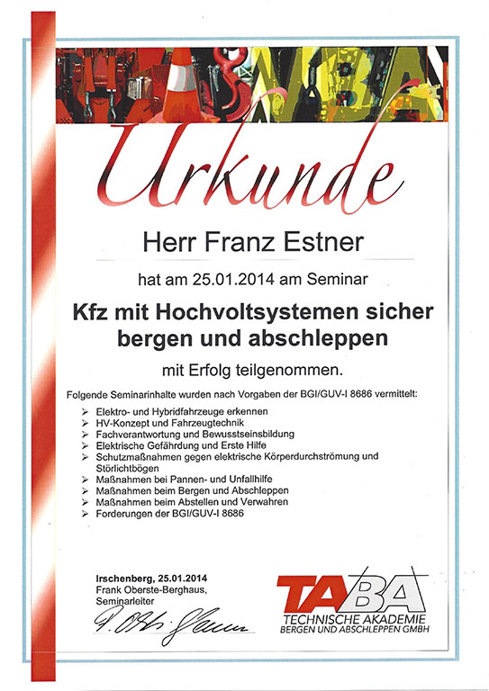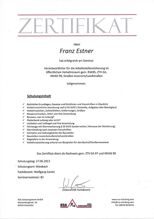 Qualität ist bei ESTNER kein bloßes Versprechen, sondern fachlich nachgewiesen und im Arbeitsalltag fest verankert. Offizielle Prüfungen, Zertifizierungen und regelmäßige interne Kontrollen sorgen dafür, dass unsere Leistungen in den einzelnen Fachbereichen dauerhaft auf hohem Niveau bleiben. So schaffen wir die Grundlage für eine Arbeit, die fachgerecht, sicher und nachvollziehbar umgesetzt wird.